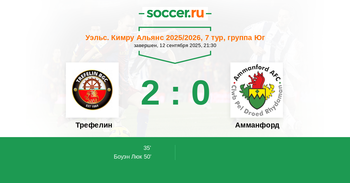 | Амманфорд | 14:17 | 8:11 | 6:6 |