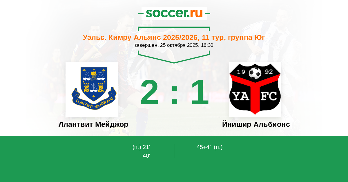 | Ллантвит Мейджор | 8:5 | 4:0 | 4:5 |