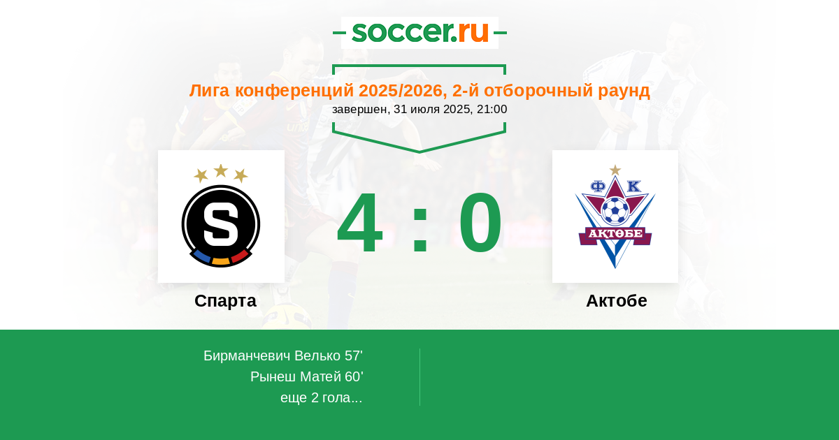 Актобе 2:1 Спарта