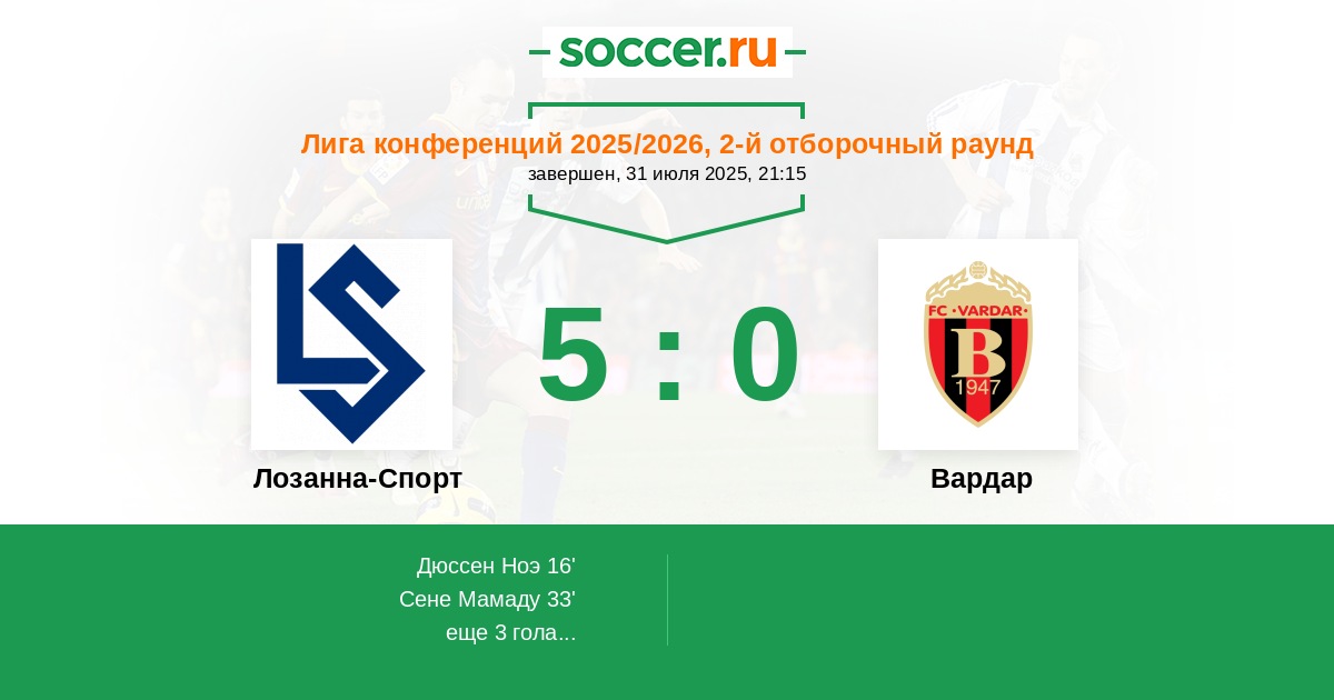 | Лозанна-Спорт | Вардар | |