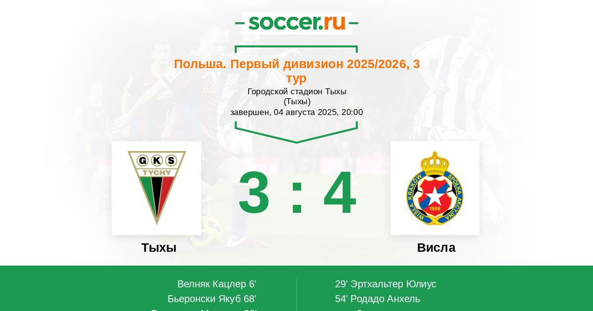 | Висла | 8:7 | 5:3 | 3:4 |