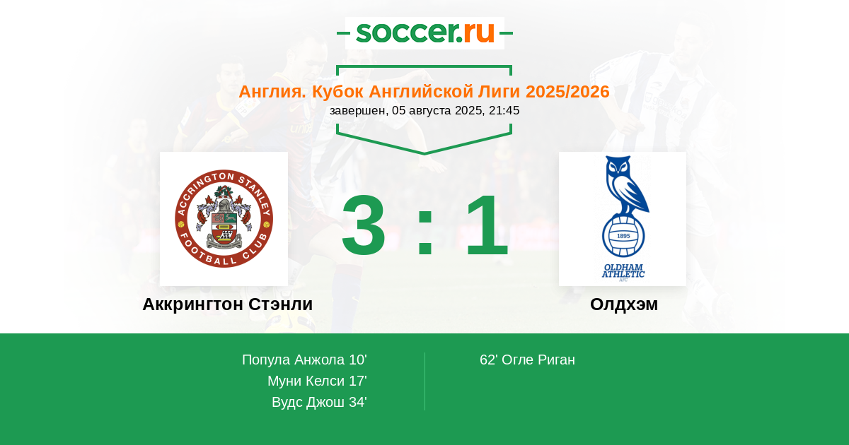 | Аккрингтон Стэнли | 13:9 | 6:5 | 7:4 |