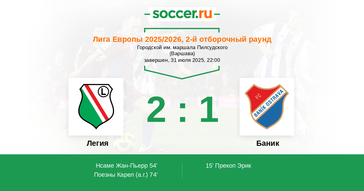 | Легия | 2:2 | 0:0 | 2:2 |