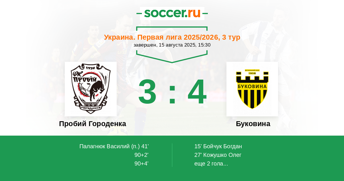 | Пробий Городенка | 1:4 | 0:1 | 1:3 |