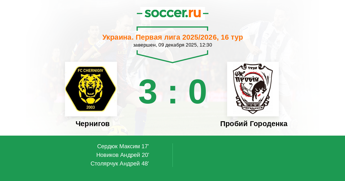 | Чернигов | Пробий Городенка | |