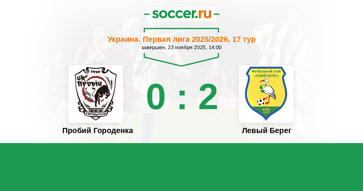 | Пробий Городенка | 1:3 | 0:0 | 1:3 |