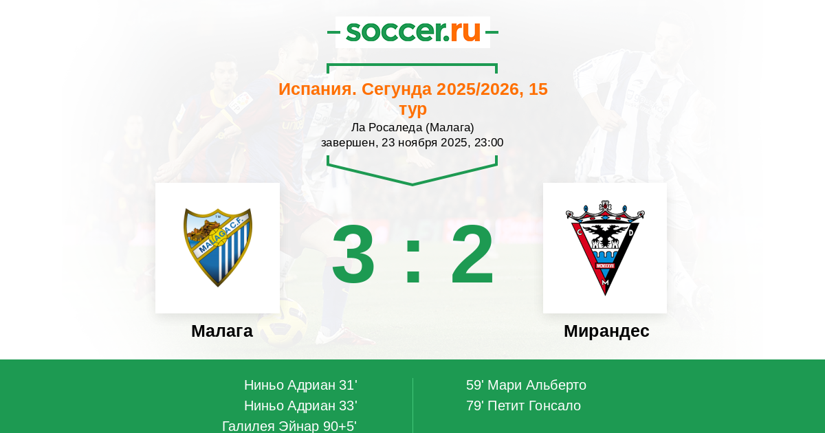 | Малага | Мирандес | |