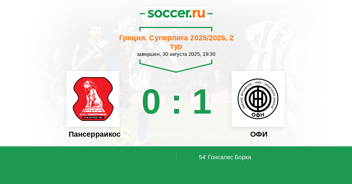 | Пансерраикос | 8:16 | 6:6 | 2:10 |