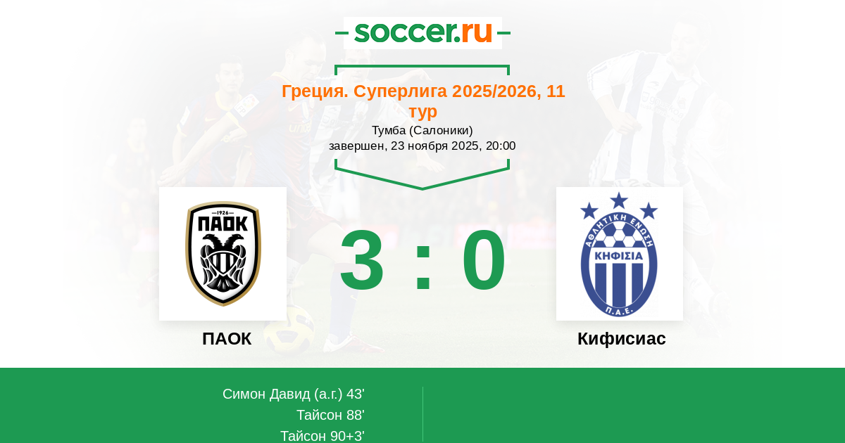 | ПАОК | 8:1 | 2:1 | 6:0 |