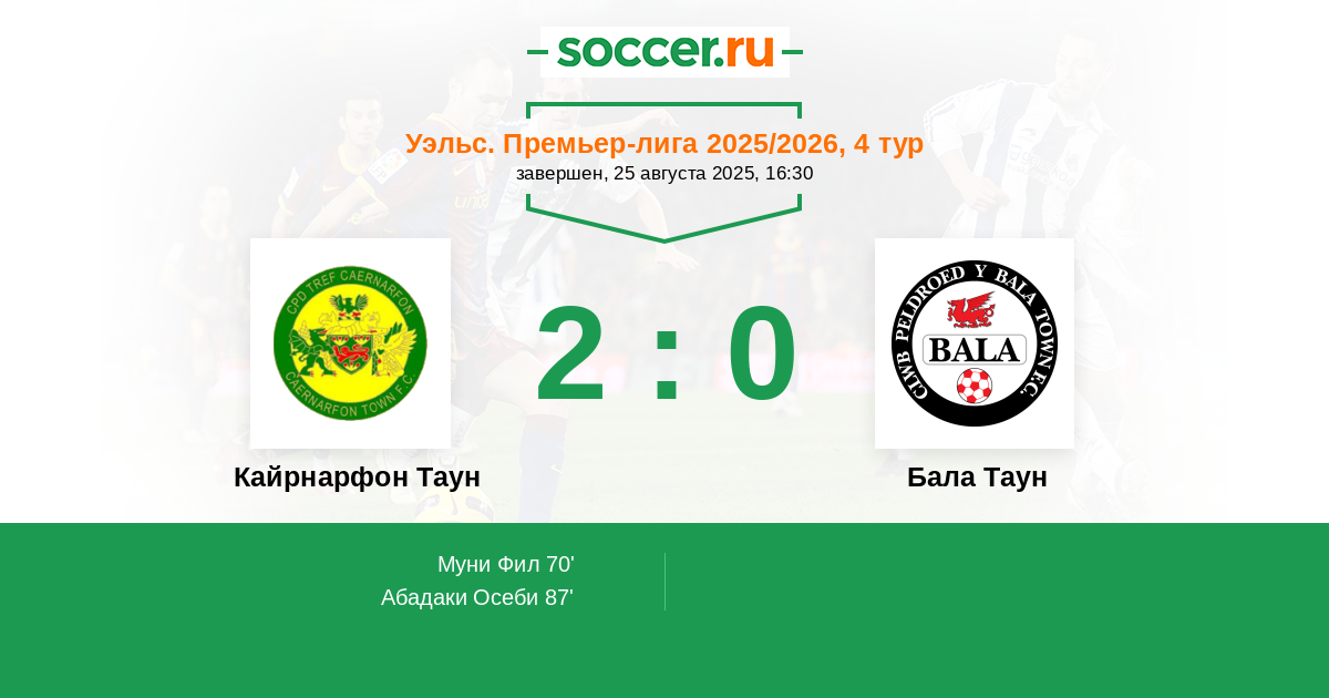 | Кайрнарфон Таун | 41:45 | 26:23 | 15:22 |