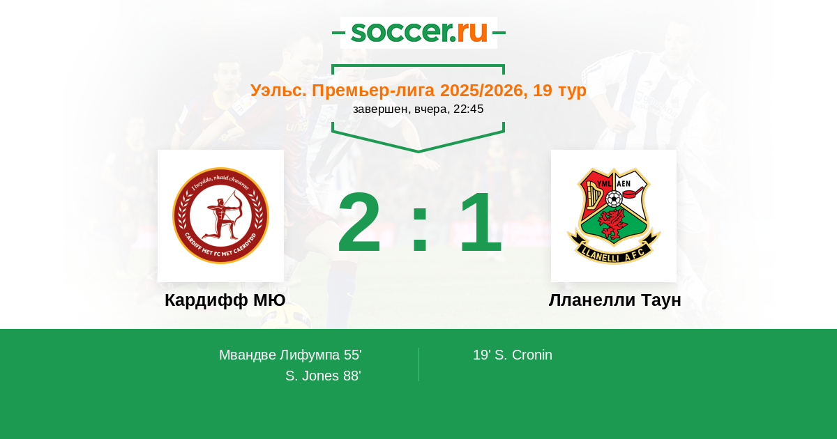 | Кардифф МЮ | 19:15 | 9:10 | 10:5 |