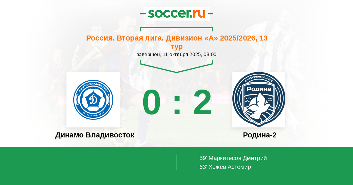 | Динамо Владивосток | 2:6 | 1:4 | 1:2 |