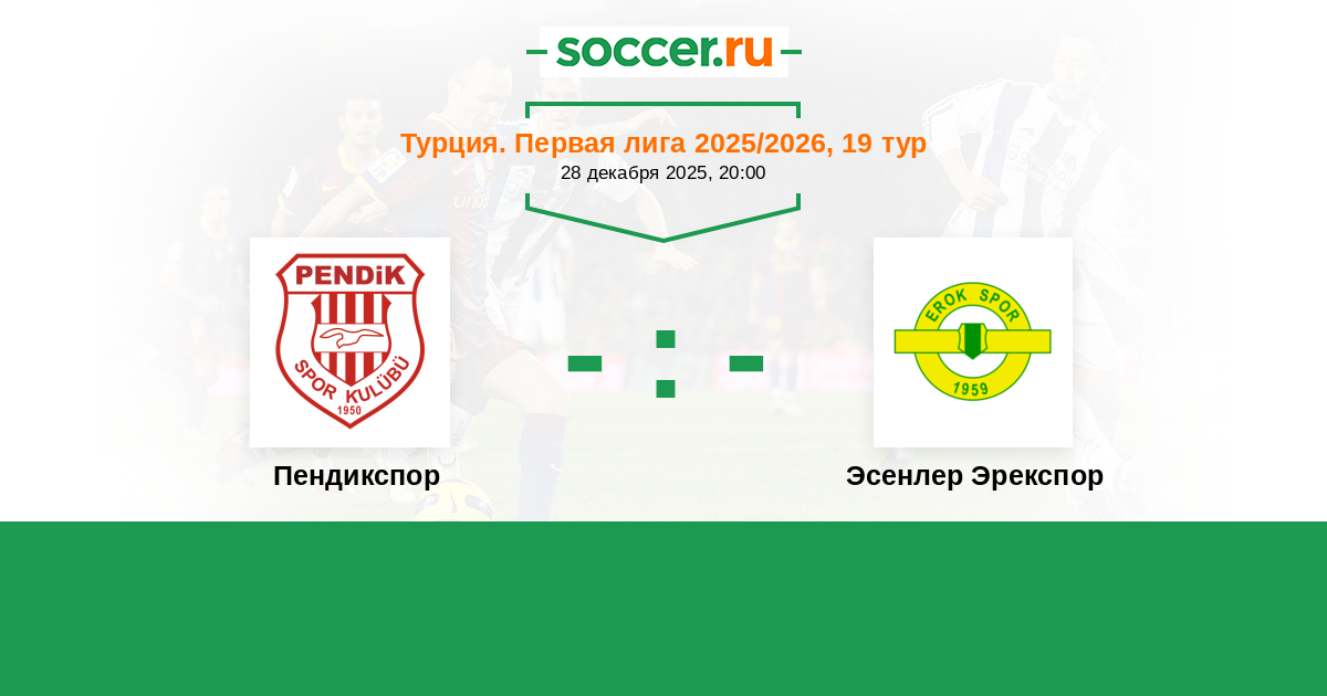 | Эсенлер Эрекспор | 6:2 | 4:0 | 2:2 |