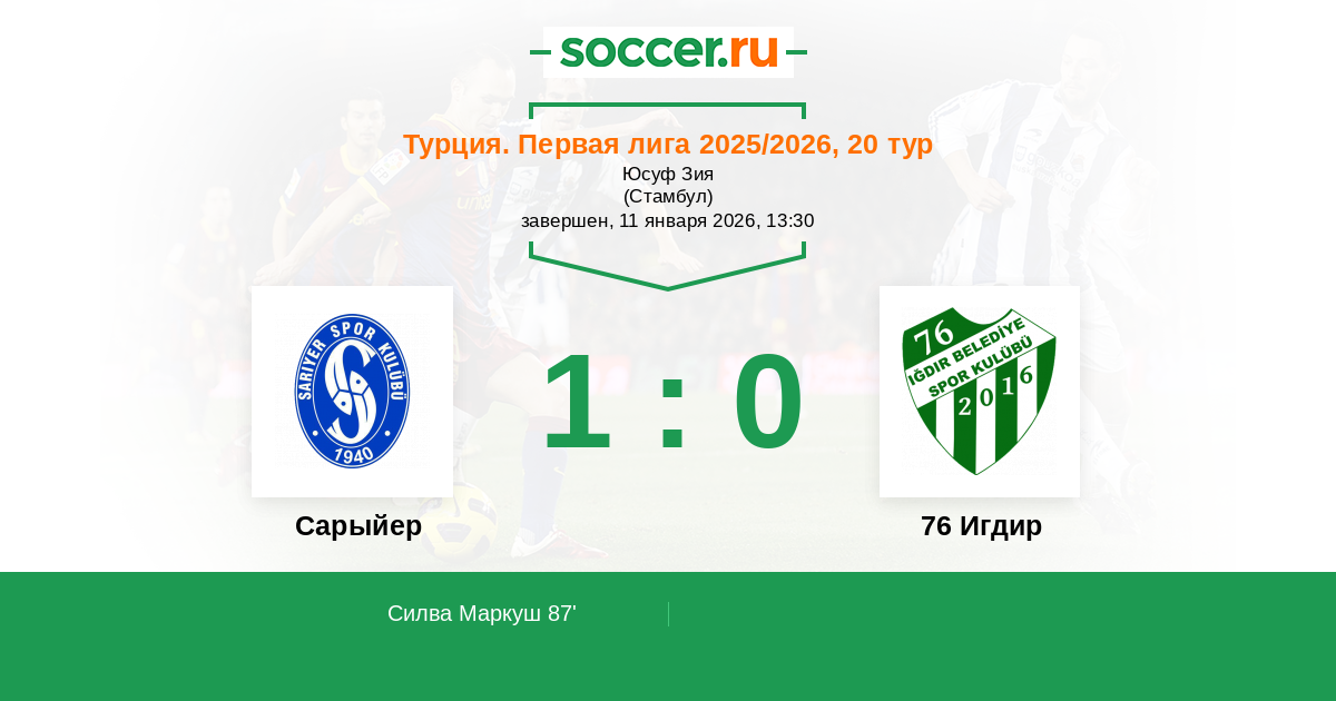 | Сарыйер | 1:2 | 0:0 | 1:2 |
