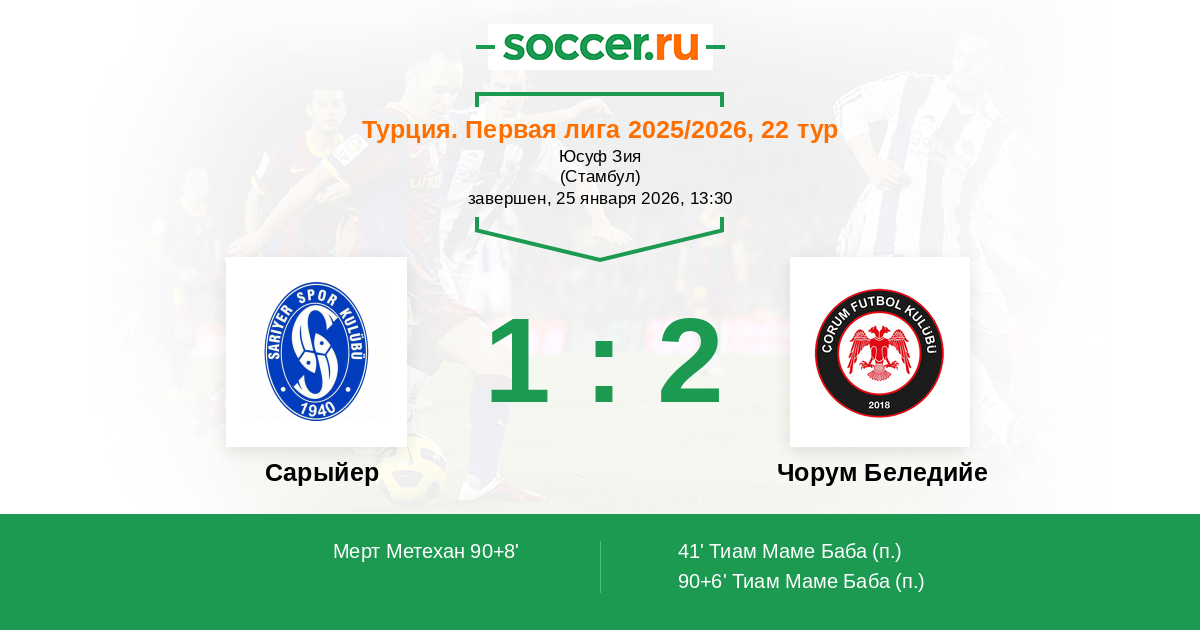 | Сарыйер | 1:2 | 0:0 | 1:2 |