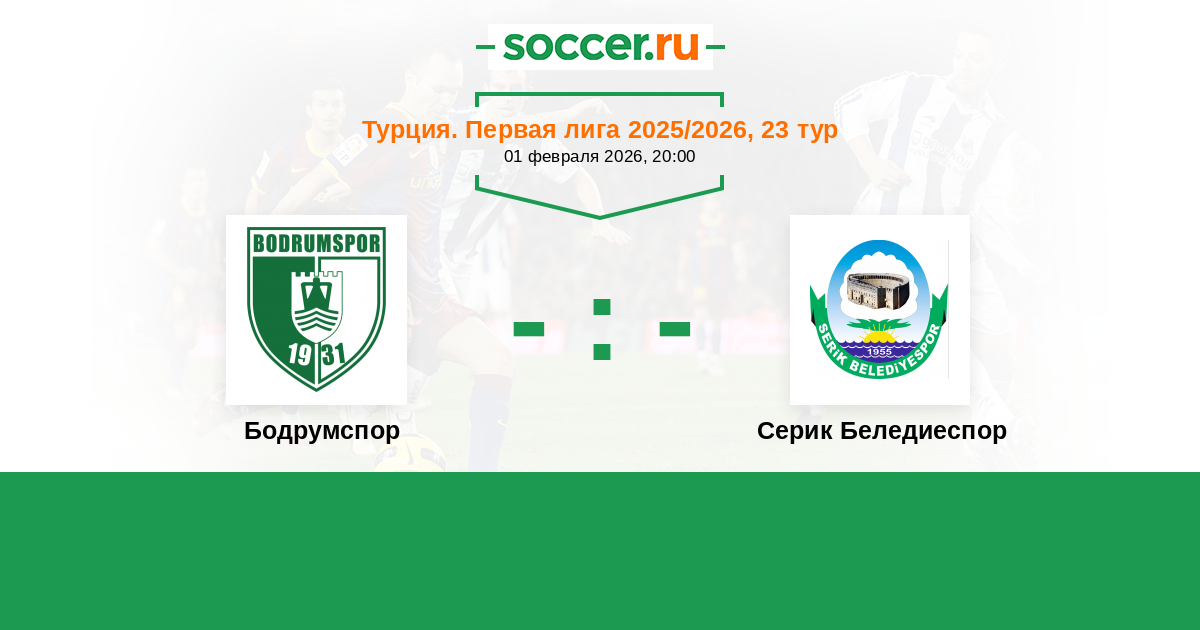 | Бодрумспор | 4:2 | 0:0 | 4:2 |