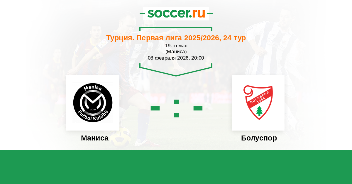 | Болуспор | 14:6 | 9:3 | 5:3 |
