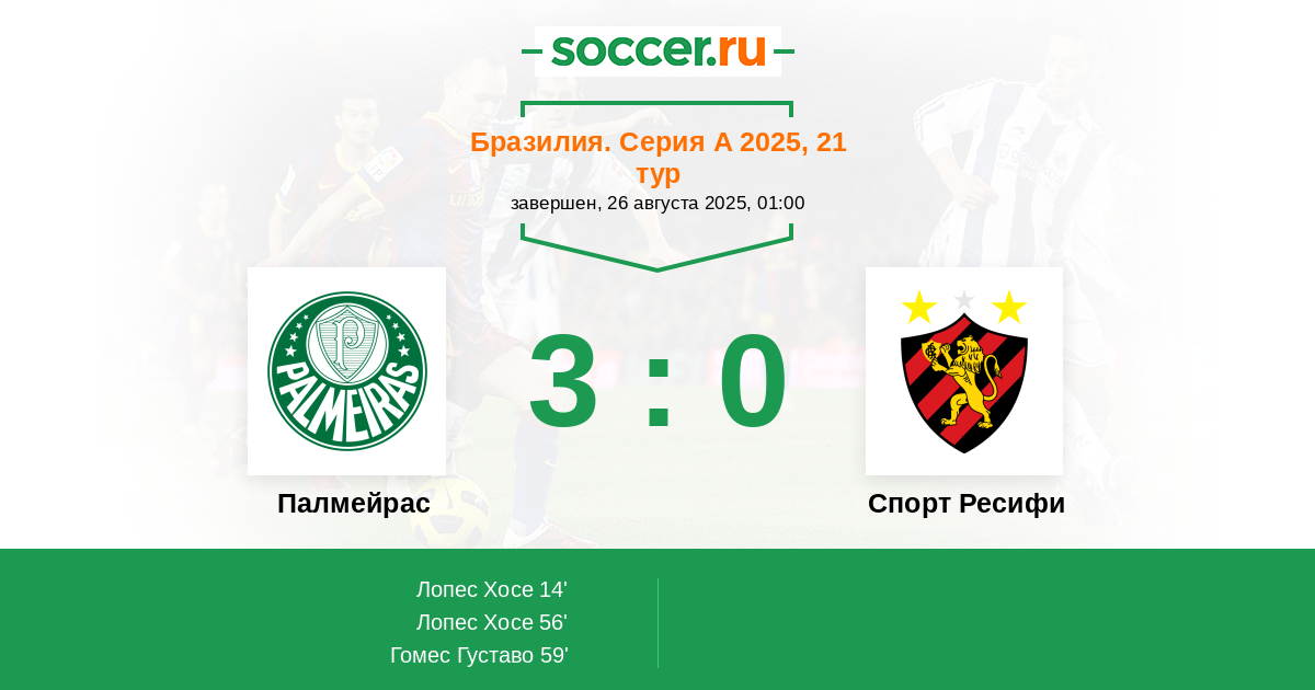 | Спорт Ресифи | 51:57 | 21:23 | 30:34 |