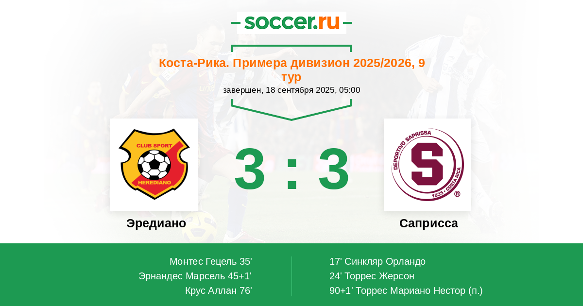 | Коста-Рика. Примера дивизион | 91 | 35 | 34 | 22 |
