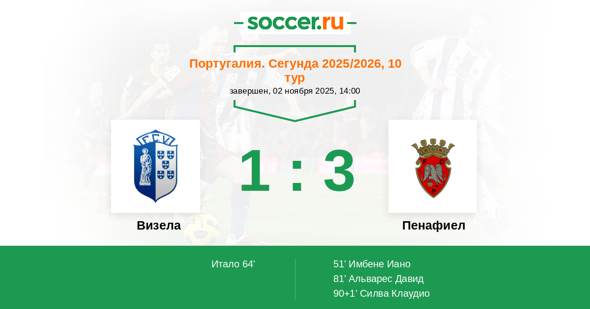 | Португалия. Второй дивизион | 4 | 2 | 0 | 2 |