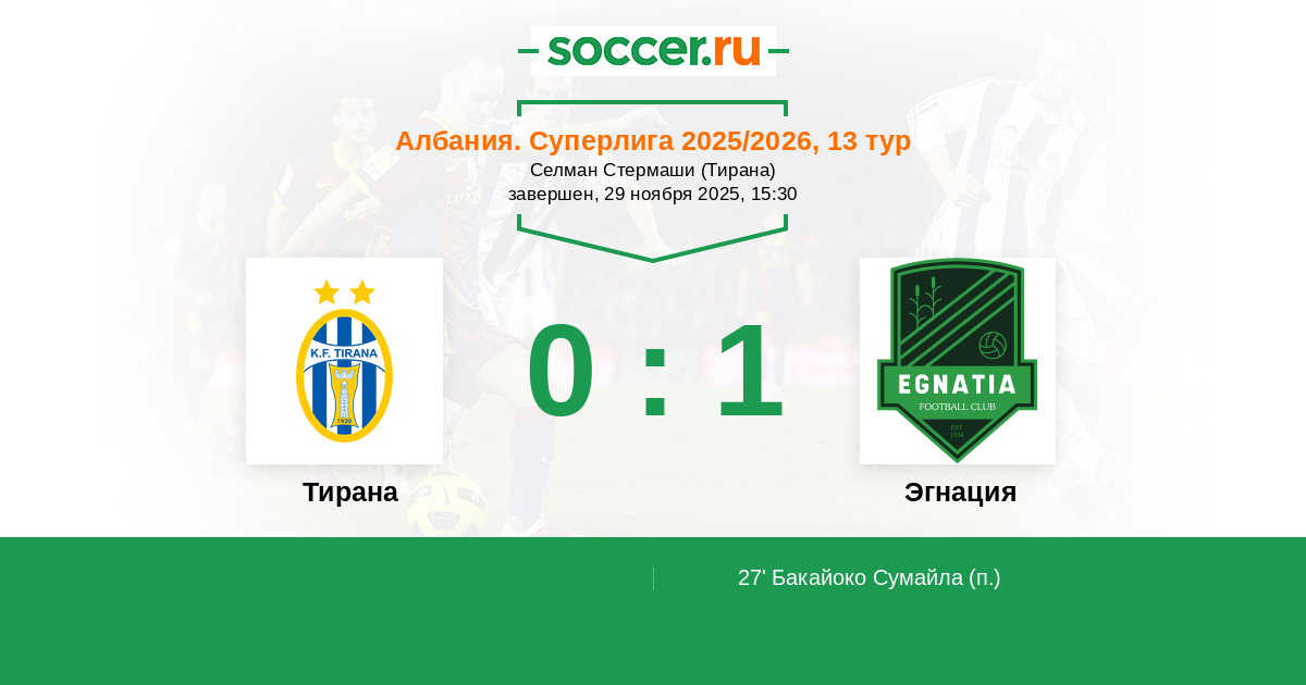 | Тирана | 38:18 | 16:13 | 22:5 |