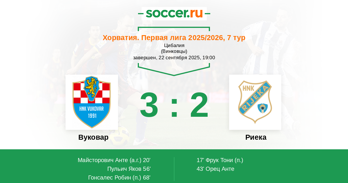 | Вуковар | 1:3 | 0:0 | 1:3 |