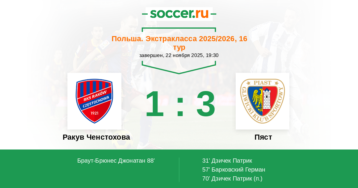 | Ракув Ченстохова | 17:8 | 8:2 | 9:6 |