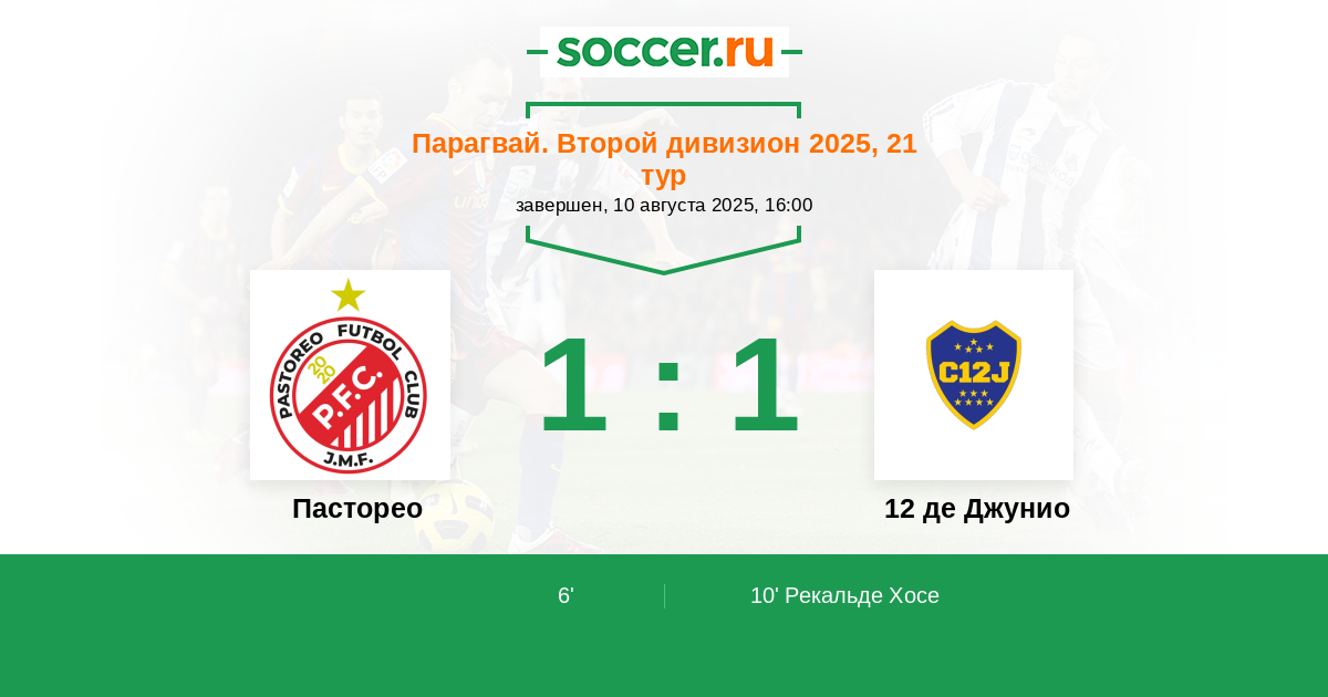 | Пасторео | 6:4 | 3:1 | 3:3 |
