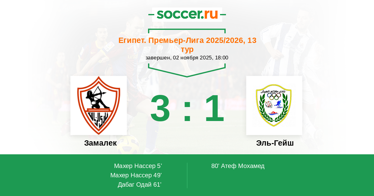 | Замалек | 75:41 | 38:14 | 37:27 |