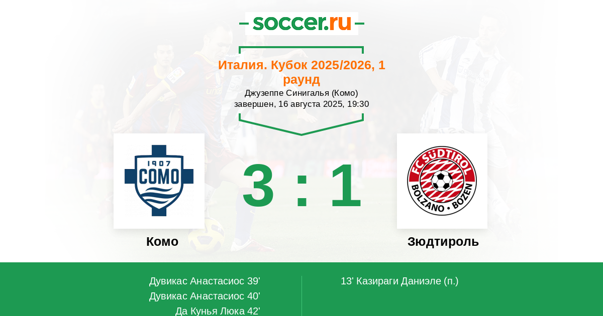 | Комо | 4:3 | 2:2 | 2:1 |