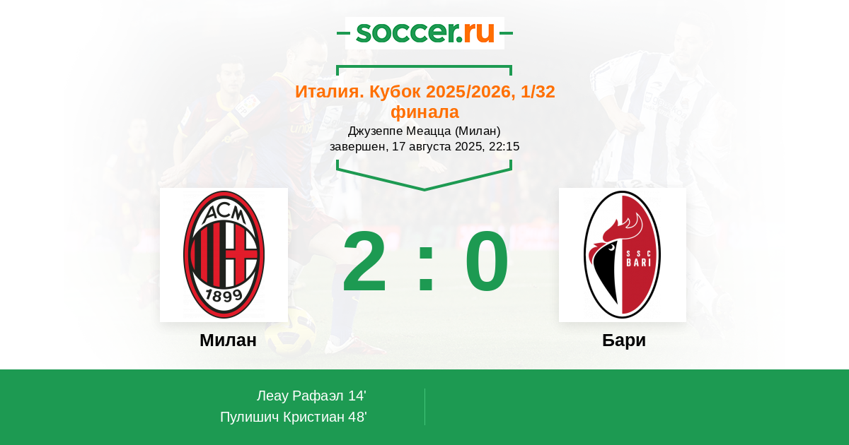 | Милан | Бари | |