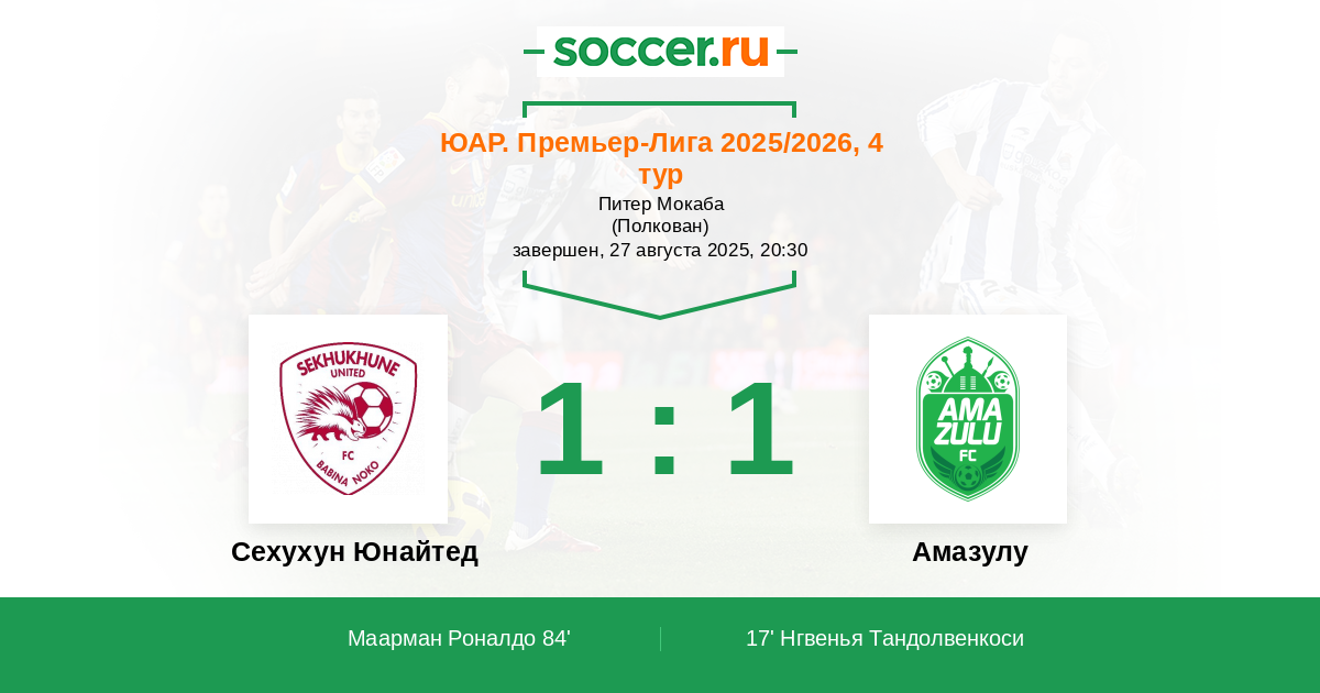 | Сехухун Юнайтед | Амазулу | |