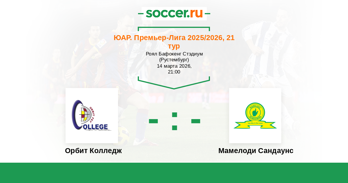 | Орбит Колледж | Мамелоди Сандаунс | |