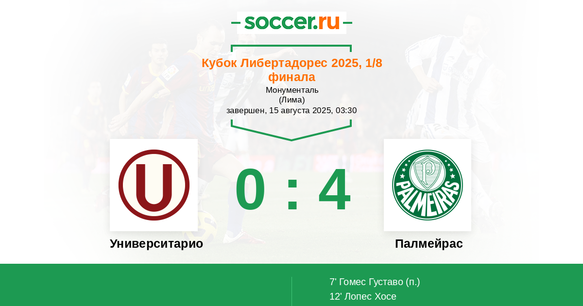 | Палмейрас | 13:3 | 9:1 | 4:2 |