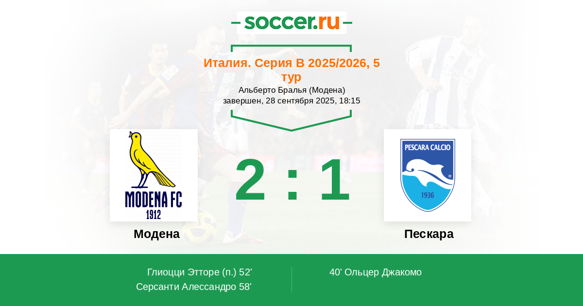 | Пескара | 6:4 | 1:2 | 5:2 |