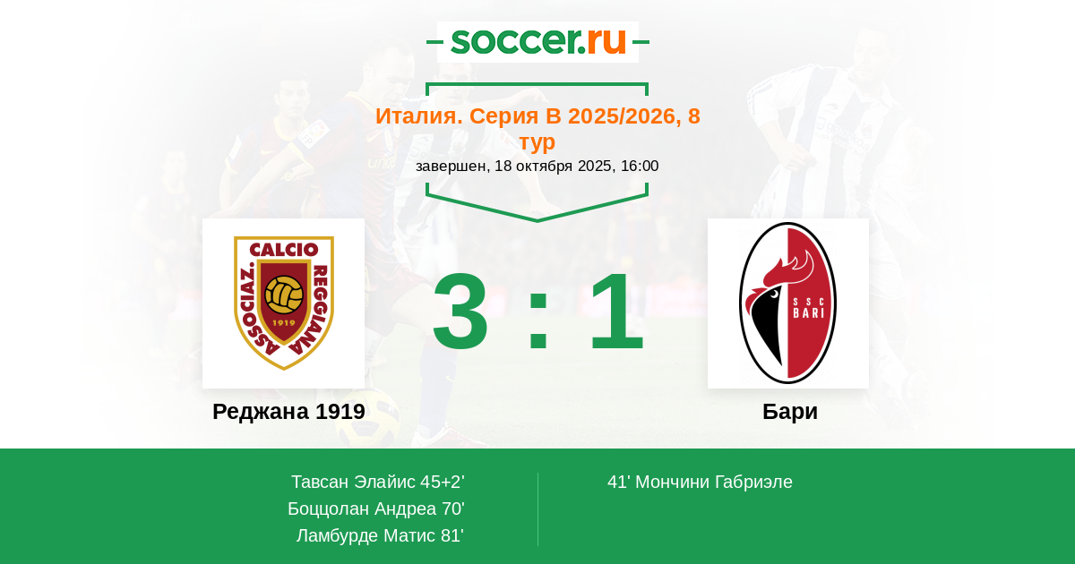 | Реджана 1919 | 5:3 | 1:1 | 4:2 |