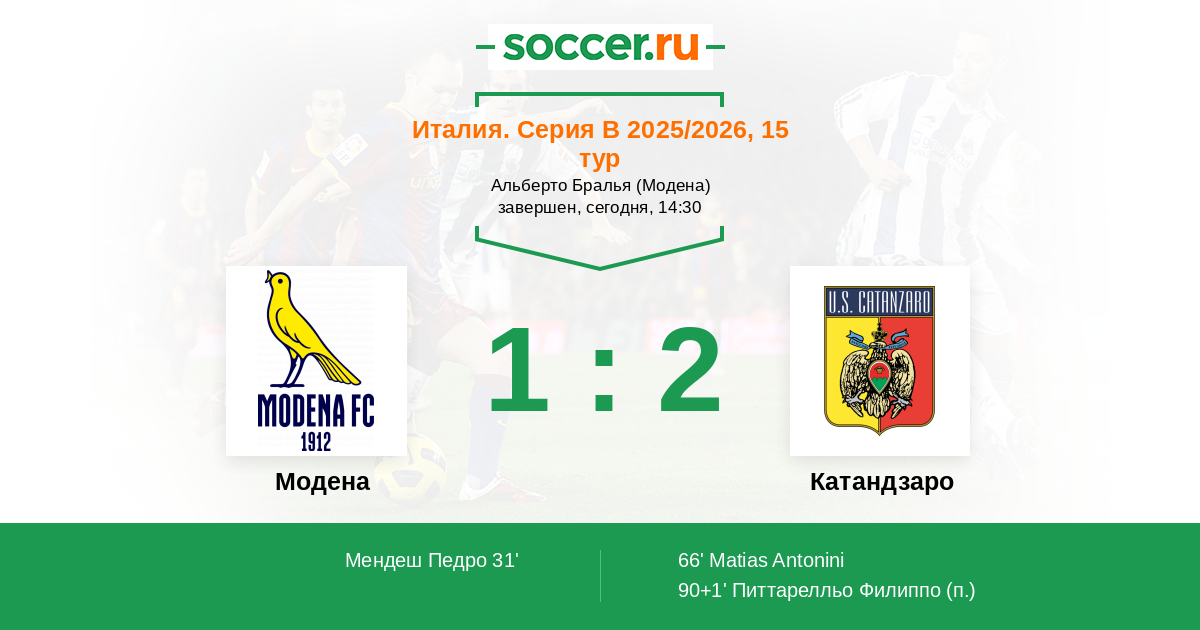 | Модена | Катандзаро | |