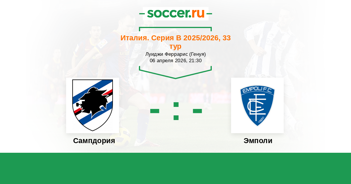 | Сампдория | 47:32 | 24:11 | 23:21 |