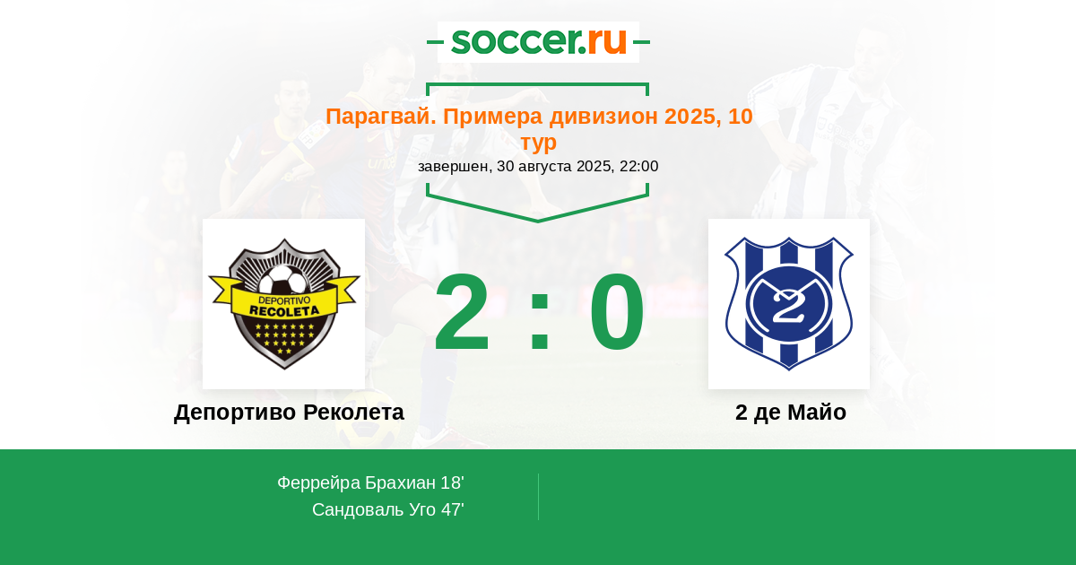 | Депортиво Реколета | 11:10 | 3:9 | 8:1 |