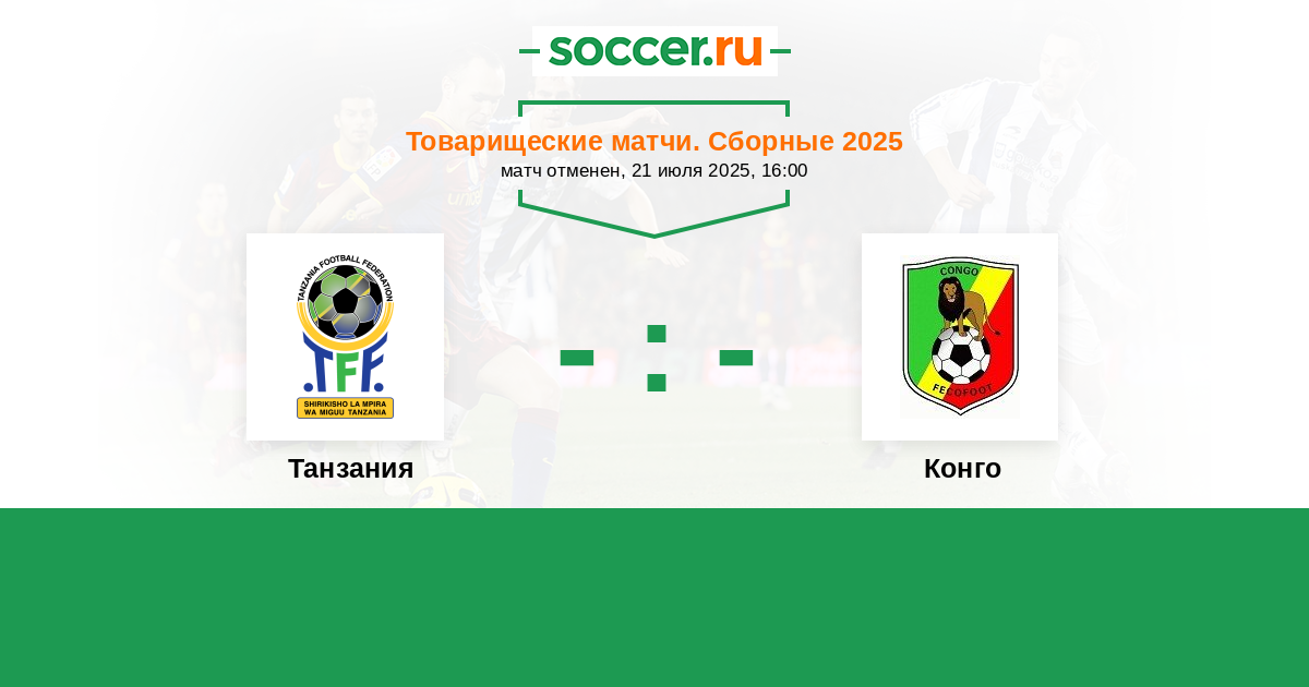 | Танзания | 4:1 | 3:0 | 1:1 |