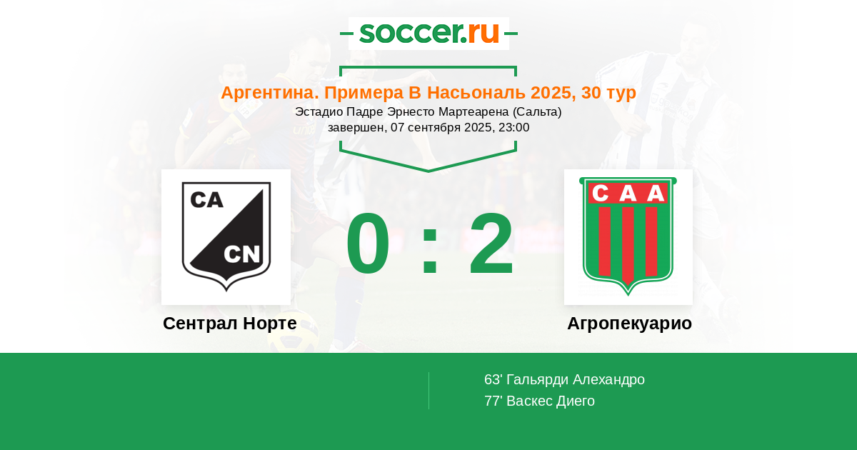 | Сентрал Норте | 0:2 | 0:0 | 0:2 |
