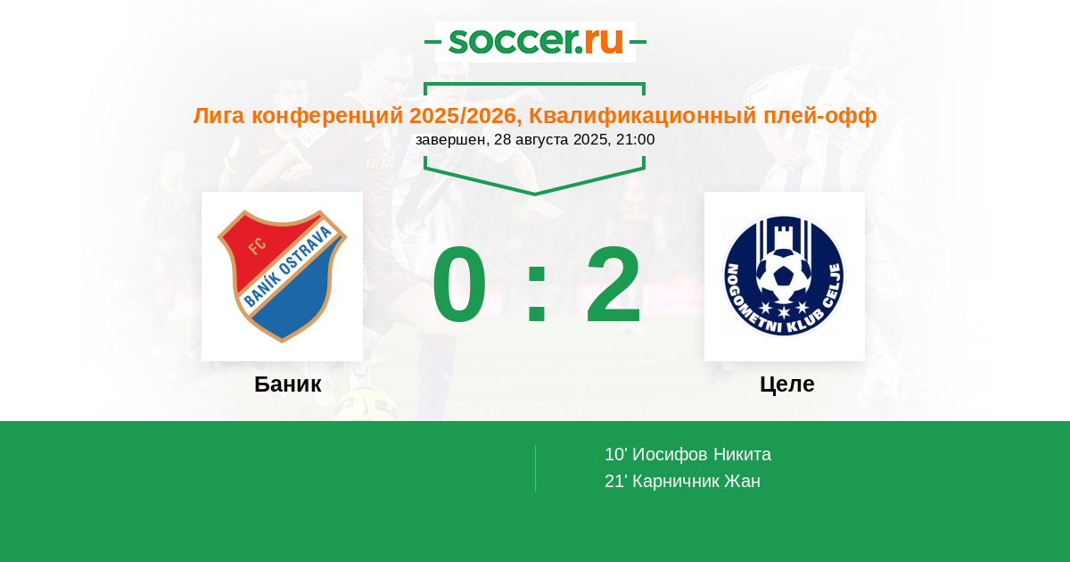 | Баник | 0:1 | 0:0 | 0:1 |