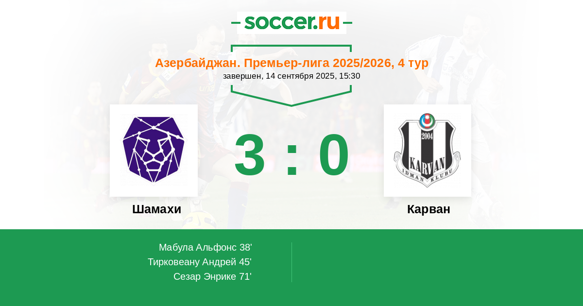 | Шамахи | 3:0 | 0:0 | 3:0 |
