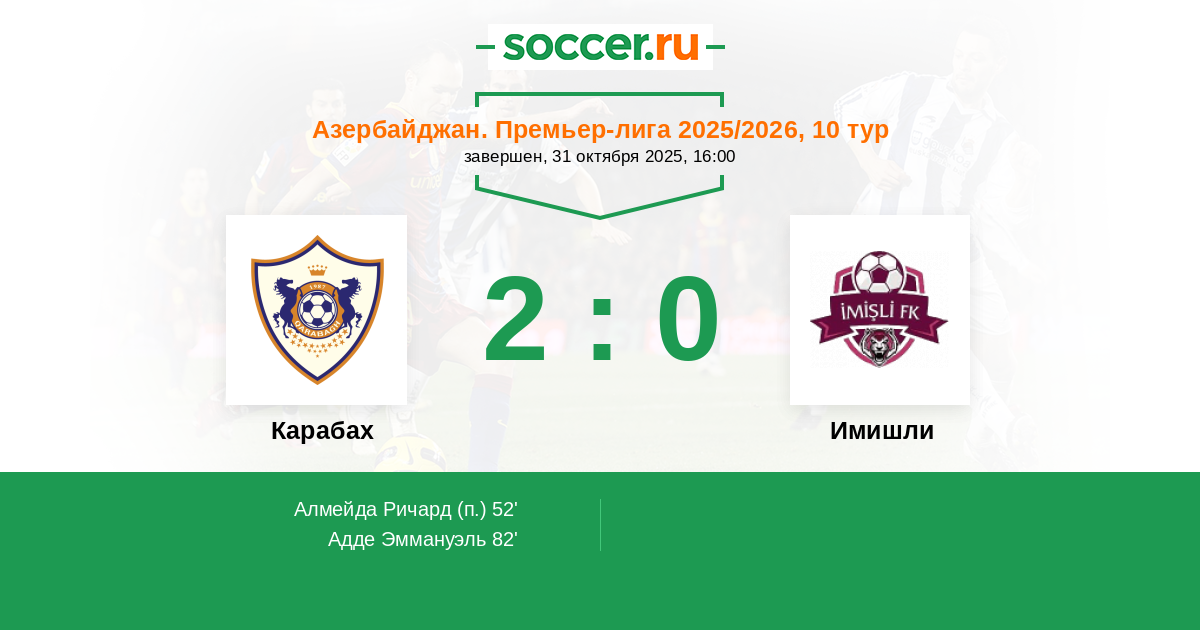 | Карабах | 1:0 | 0:0 | 1:0 |