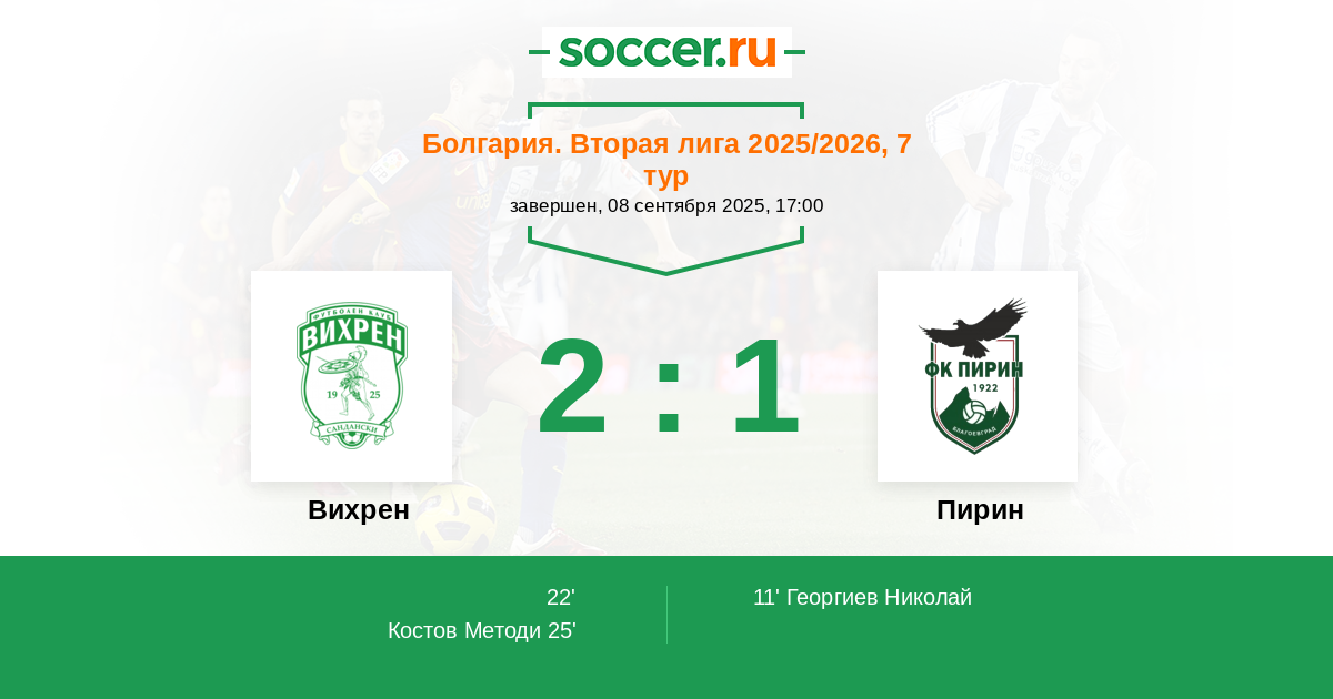| Вихрен | 1:1 | 0:0 | 1:1 |
