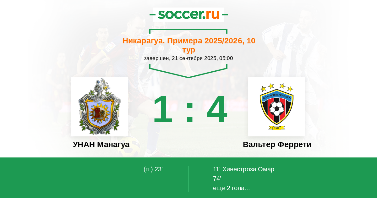 | УНАН Манагуа | 35:76 | 18:30 | 17:46 |