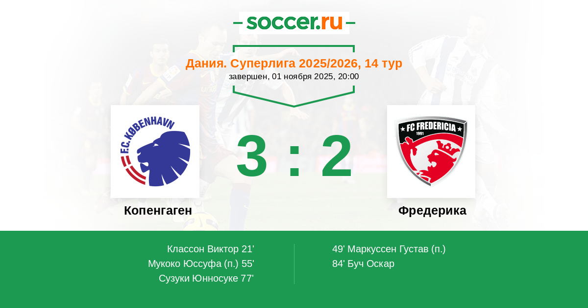 | Фредерика | 0:2 | 0:2 | 0:0 |