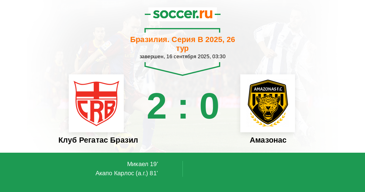 | Бразилия. Серия В | 3 | 0 | 1 | 2 |