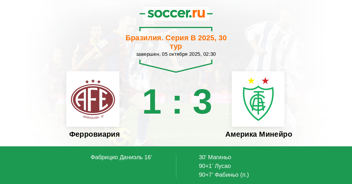 | Ферровиария | Америка Минейро | |