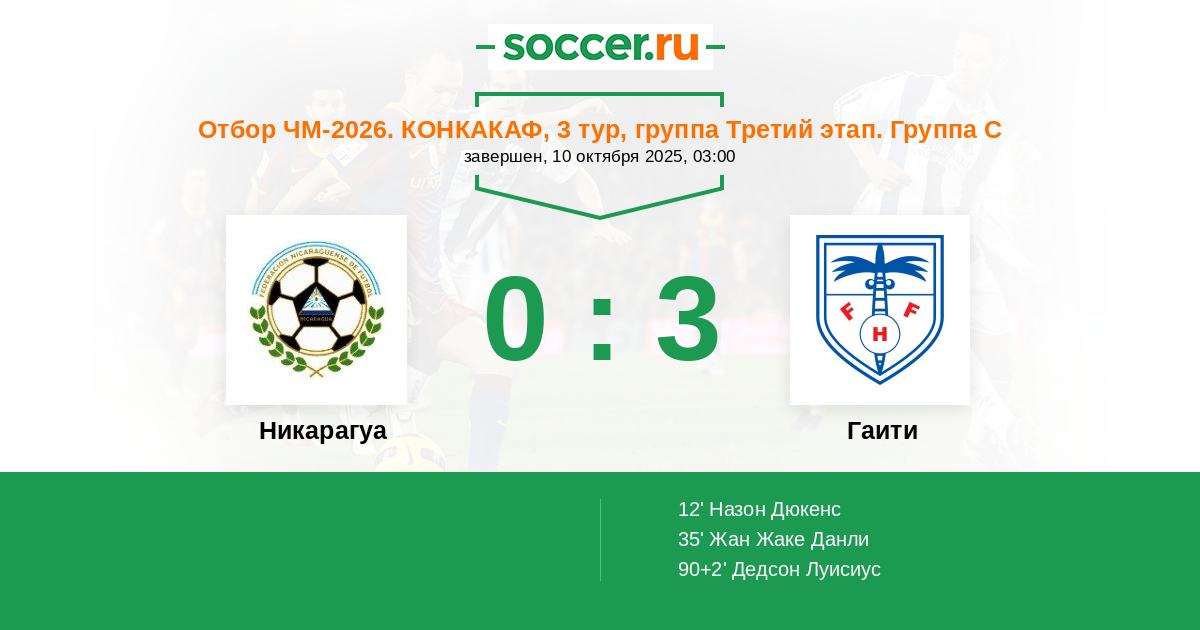 | Гаити | 5:0 | 3:0 | 2:0 |